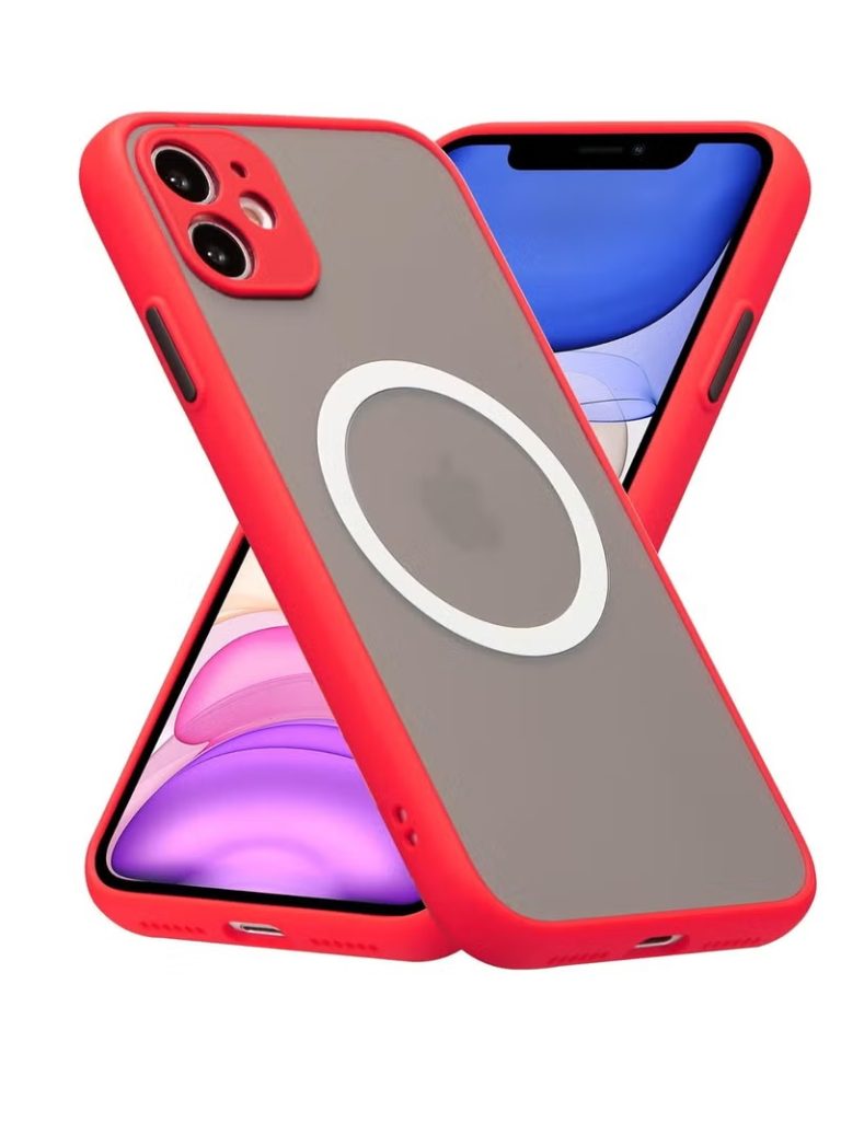 Magnetic Case for iPhone 11 , Compatible with Wireless Charging [Silky Touch] [Matte PC Back] TPU Bumper Shockproof Slim Thin Phone – Red