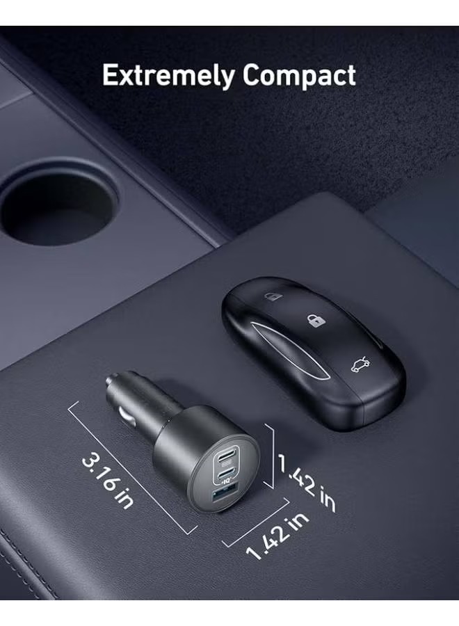 Anker Car Charger, 167.5W Max 3-port Car Charger Adapter, Usb-c Car Adapter For Macbook Pro/Air, Iphone 15/14 Series, Samsung S24/S23, Ipad, Airpods, Mp3 Player