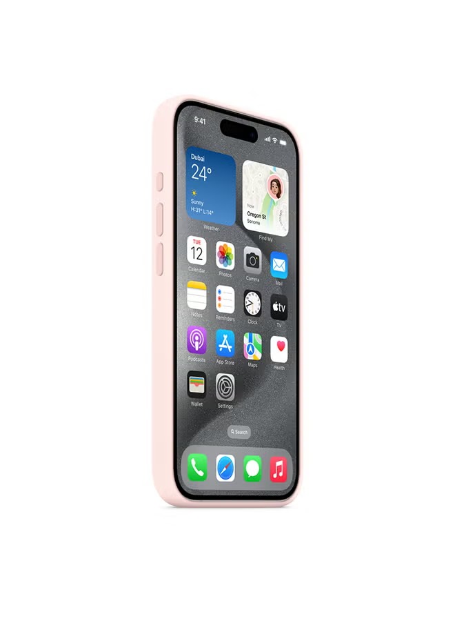 Designed by Apple to complement iPhone 15 Pro, the Silicone Case with MagSafe is a delightful way to protect your iPhone.The silky, soft-touch finish of the silicone exterior feels great in your hand. And on the inside, there’s a soft microfibre lining for even more protection.With built-in magnets that align perfectly with iPhone 15 Pro, this case offers a magical attach experience and faster wireless charging, every time. When it’s time to charge, just leave the case on your iPhone and snap on your MagSafe charger, or set it on your Qi-certified charger.Like every Apple-designed case, it undergoes thousands of hours of testing throughout the design and manufacturing process. So not only does it look great, it’s built to protect your iPhone from scratches and drops.