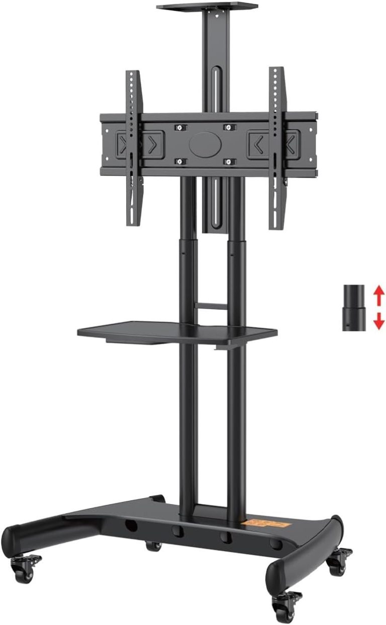 Truman Tv Trolley – Model AVA1500-60-1P – With Wheels Movable For LCD – LED Flat or Curved Screen for 32-70 Inch Height Adjustable Rolling, weight capacity Up to 45.5 KG- Floor TV Stand with Tray