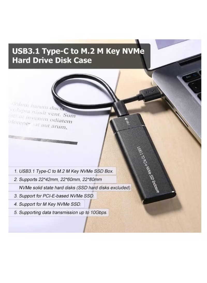 CARE CASE NVME SSD Enclosure, M.2 NVME to USB C Adapter with Black case, USB 3.1 Gen 2 (10 Gbps) M2 PCIE SSD with hard disk NVMe 256GB
