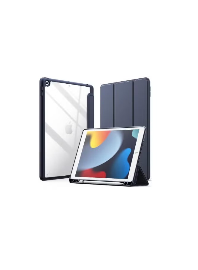 Case for iPad 10.2-Inch (9th/8th/7th Generation, 2021/2020/2019),Clear Shockproof Back Cover Built-in Pencil Holder,Auto Sleep/Wake (Dark Blue)