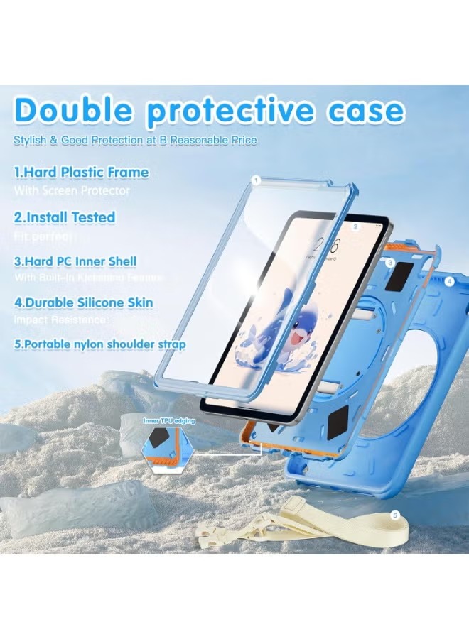 Case for iPad (A16) 11th 10th Generation 10.9″ for Kids Boys, Heavy Duty Rugged Cute Cartoon Dolphins Cover with pen+Swivel Stand+Handle Strap, Azure Blue