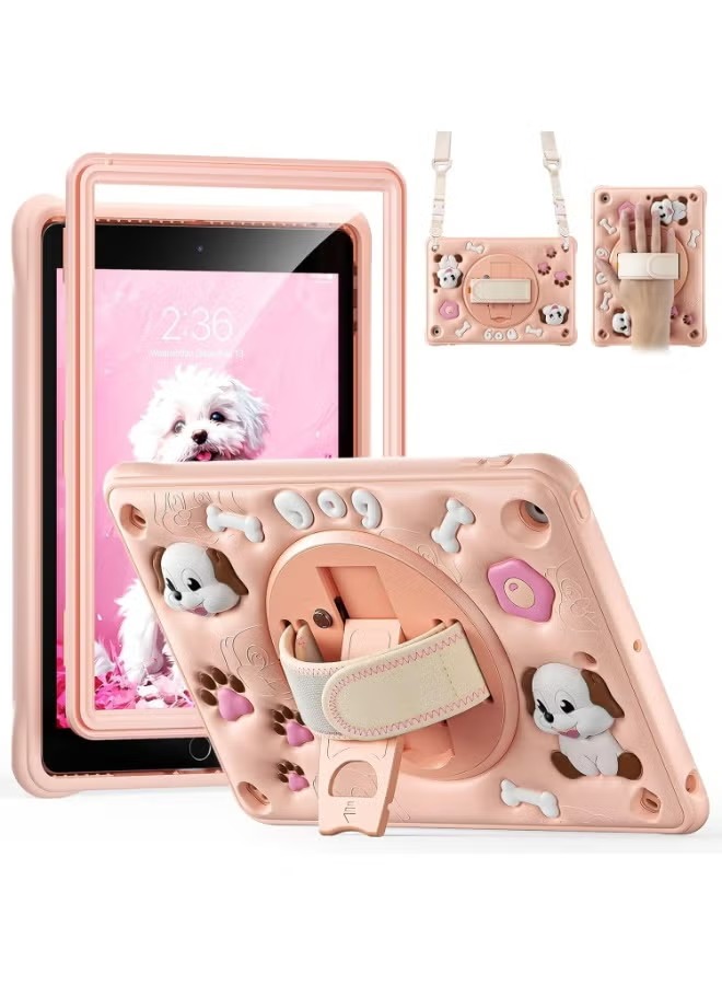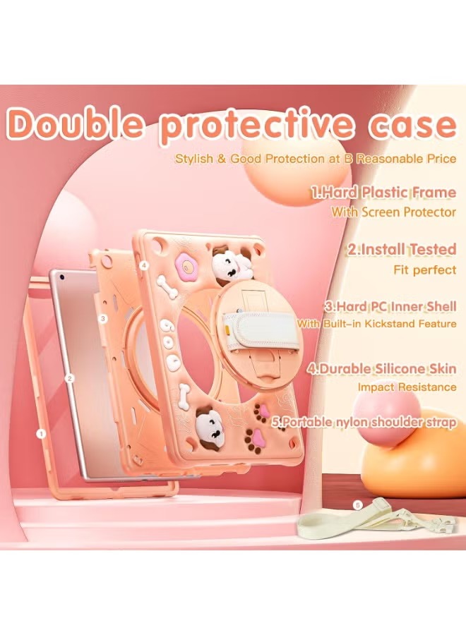 Case for iPad (A16) 11th 10th Generation 10.9″ for Kids Boys, Heavy Duty Rugged Cute Cartoon Dolphins Cover with pen+Swivel Stand+Handle Strap, Pink