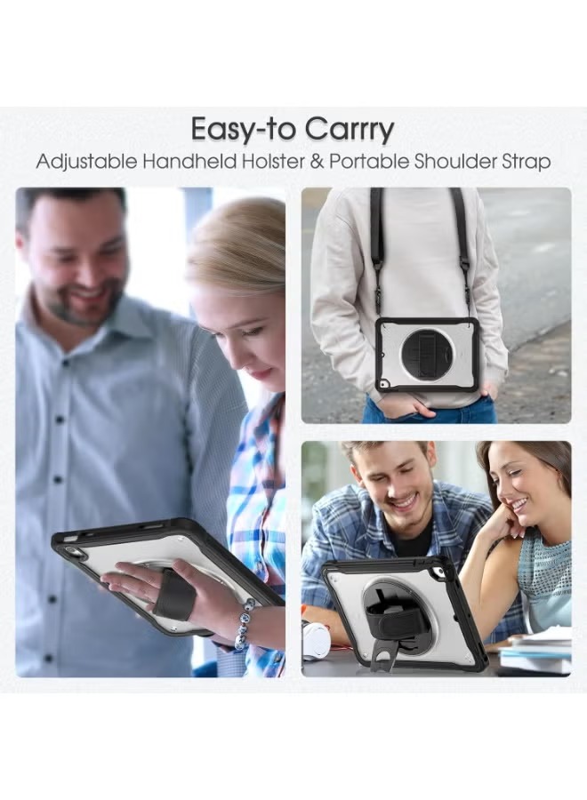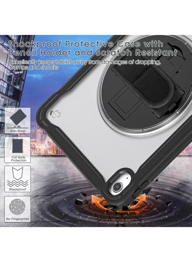 case for iPad (A16) 11th/10th Generation 11/10.9 inch 2025/2022,Rugged Shockproof Protective Cover with 360° Rotating Hand Strap/Stand,Screen Protector,Pencil Holder, pen, Black
