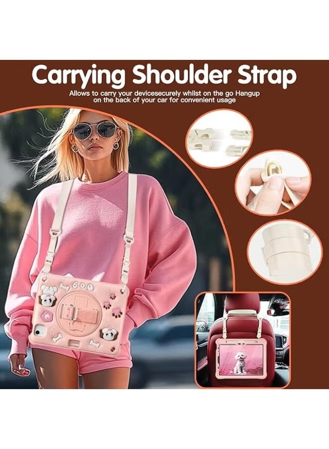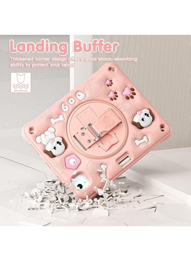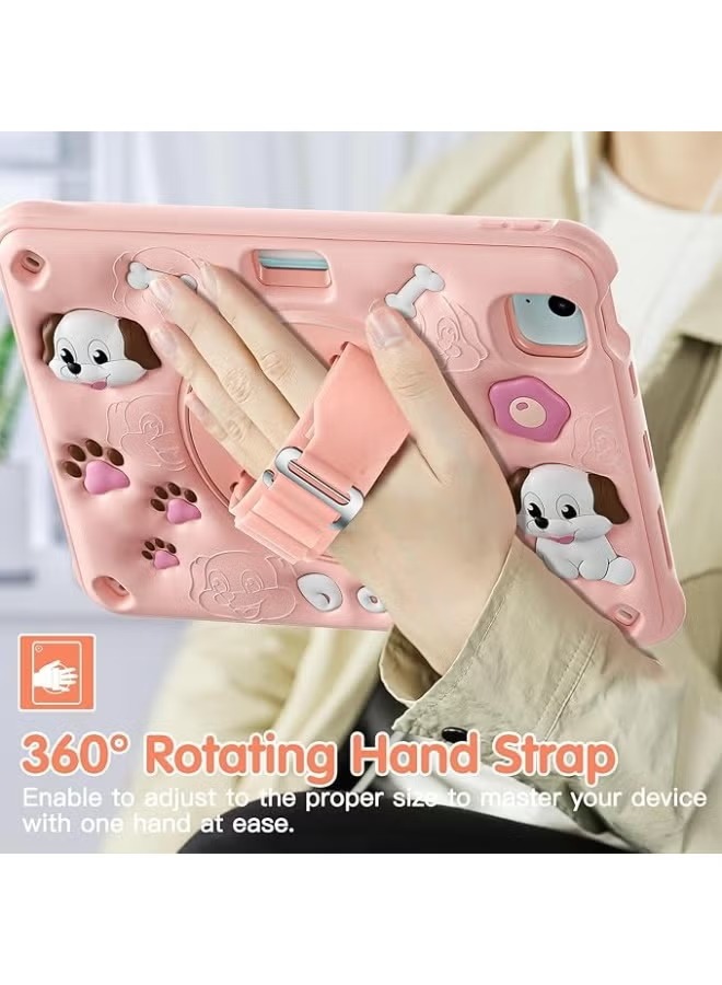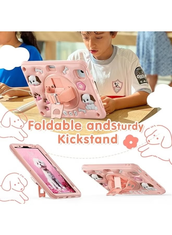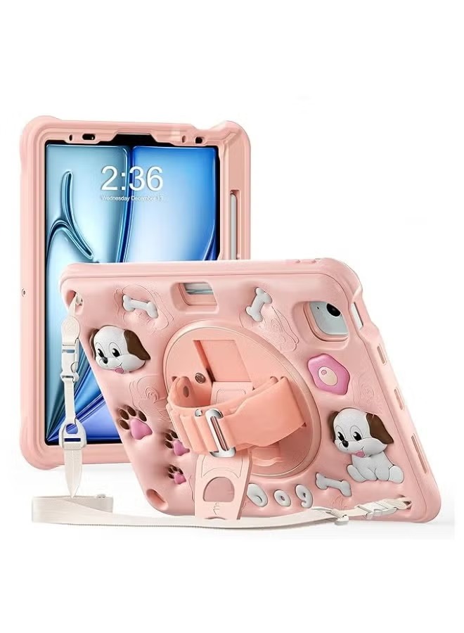 Case for iPad Air 11 2025 / 2024 / Pro 11 2022 10.9″ for Kids Boys, Heavy Duty Rugged Cute Cartoon Duck Cover with pen+Swivel Stand+Handle Strap, Pink