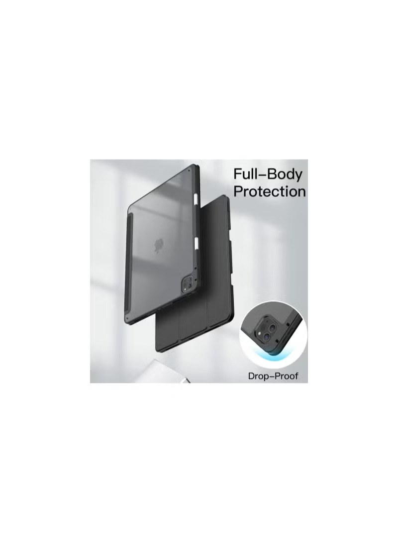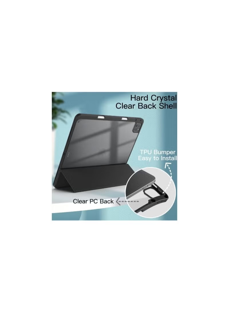 Case for iPad iPad Air 13 Inch Case M2 2024/iPad Pro 12.9 6th/5th/4th Generation 2022/2021/2020 with Pencil Holder, Clear Transparent Back Shell Slim Stand Shockproof Tablet Cover, Auto Wake/Sleep (Black)