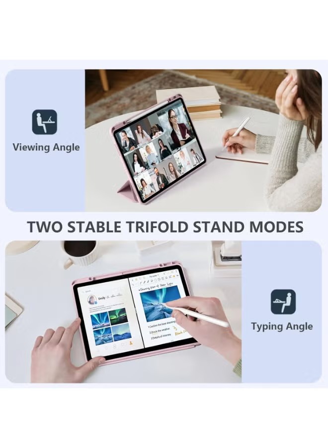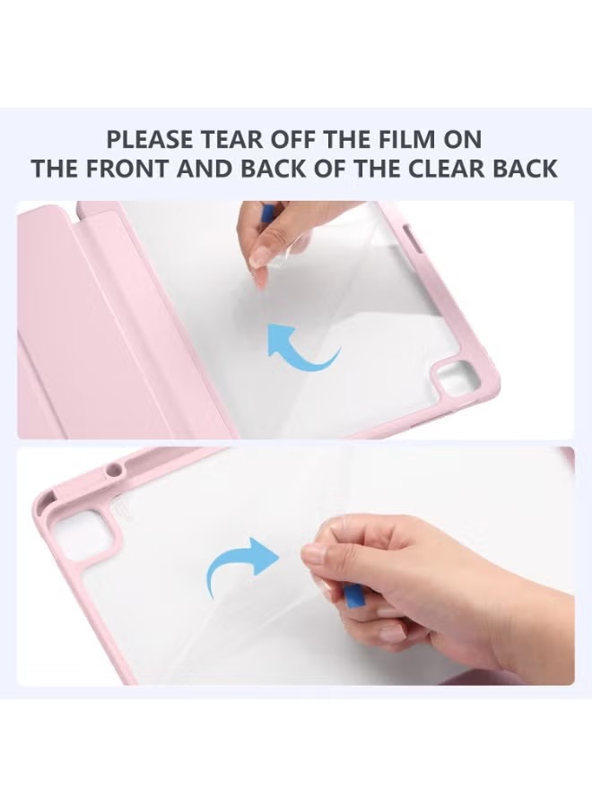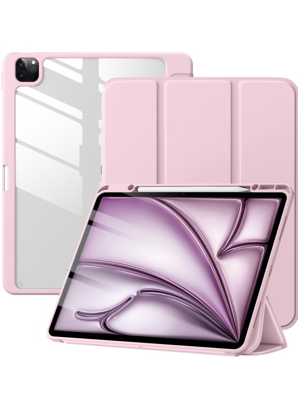 Case for iPad iPad Air 13 Inch Case M2 2024/iPad Pro 12.9 6th/5th/4th Generation 2022/2021/2020 with Pencil Holder, Clear Transparent Back Shell Slim Stand Shockproof Tablet Cover, Auto Wake/Sleep (Pink)