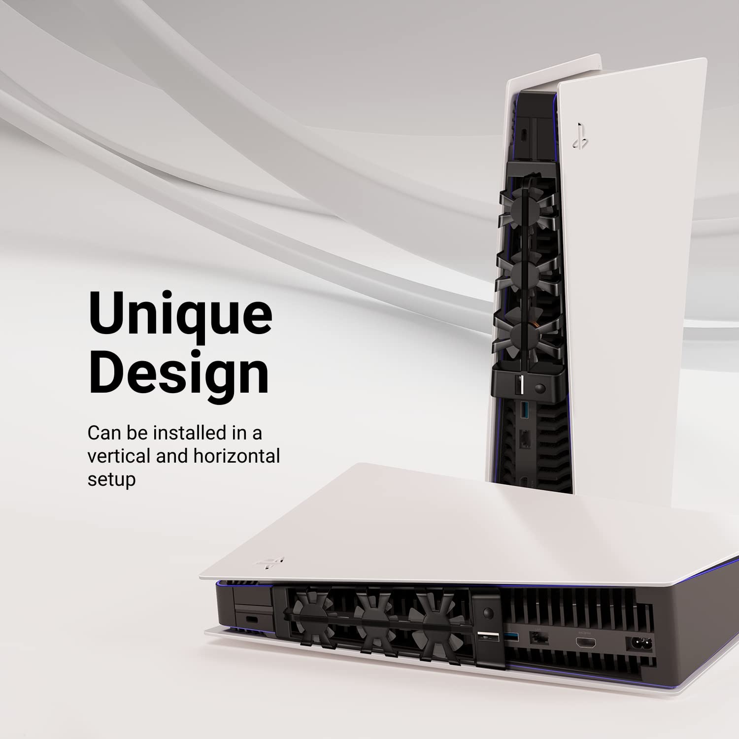 Stylish Blue LED Lighting: Our PS5 cooling fan enhances the look of your console, adding a sleek, modern touch that complements any gaming or work environment.