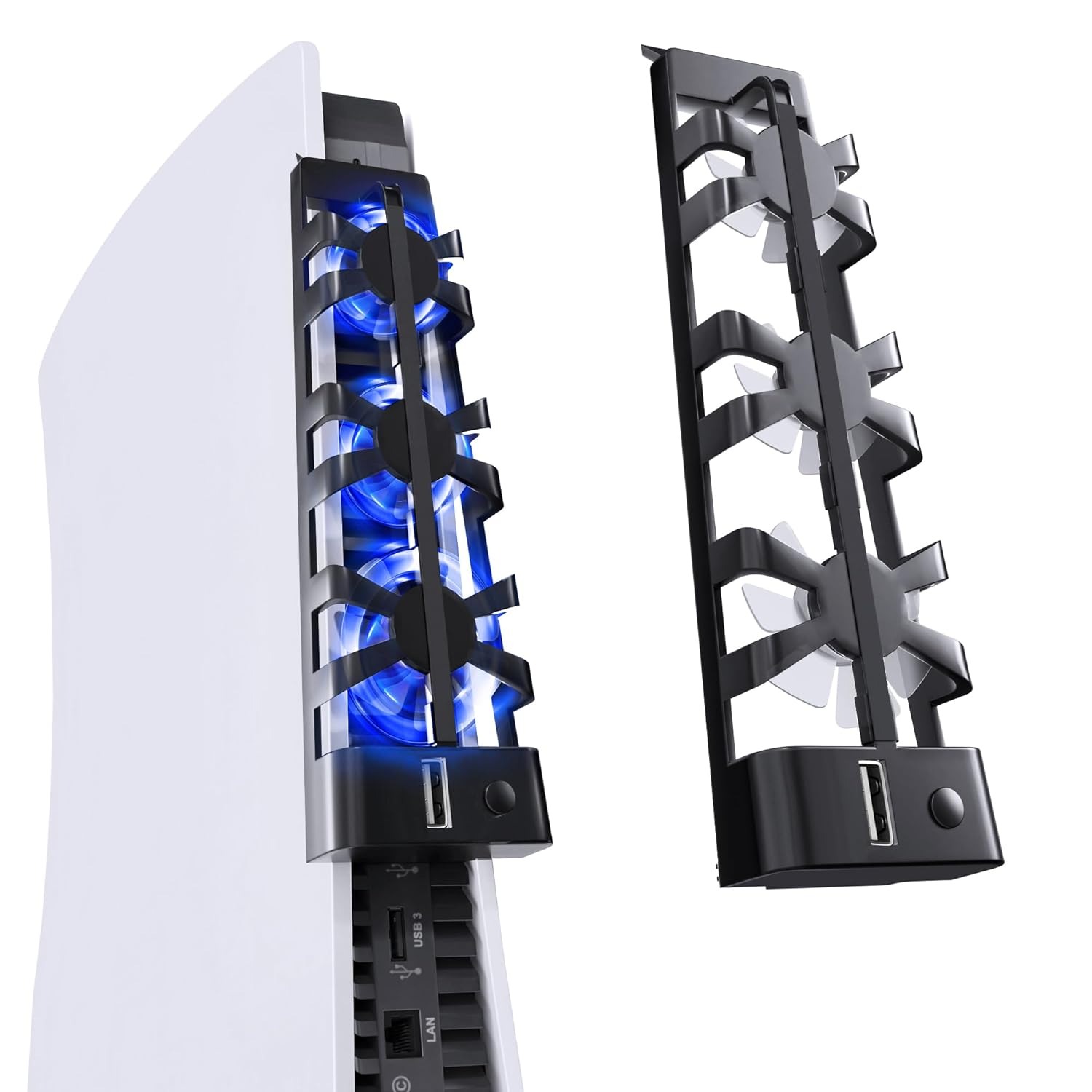 Cooling Fan for PlayStation 5 – High-Speed, Quiet External Cooling Fan for PlayStation 5 with Blue LED Lighting – 3 Fans, Cooling Accessories for PlayStation 5 Disc Edition, Compatible with PlayStation 5 Digital Edition – Black