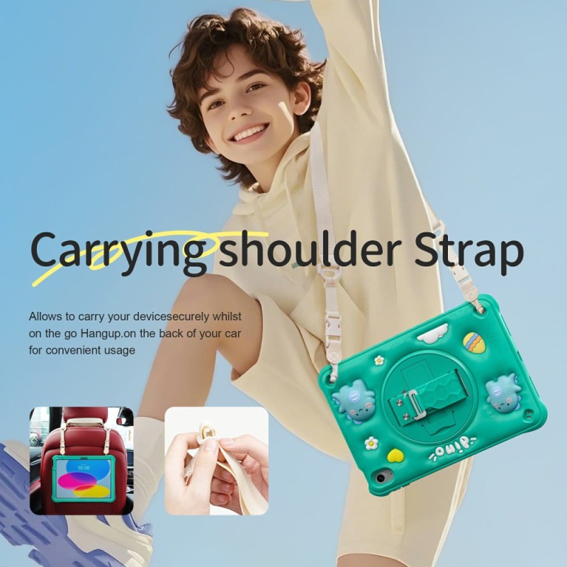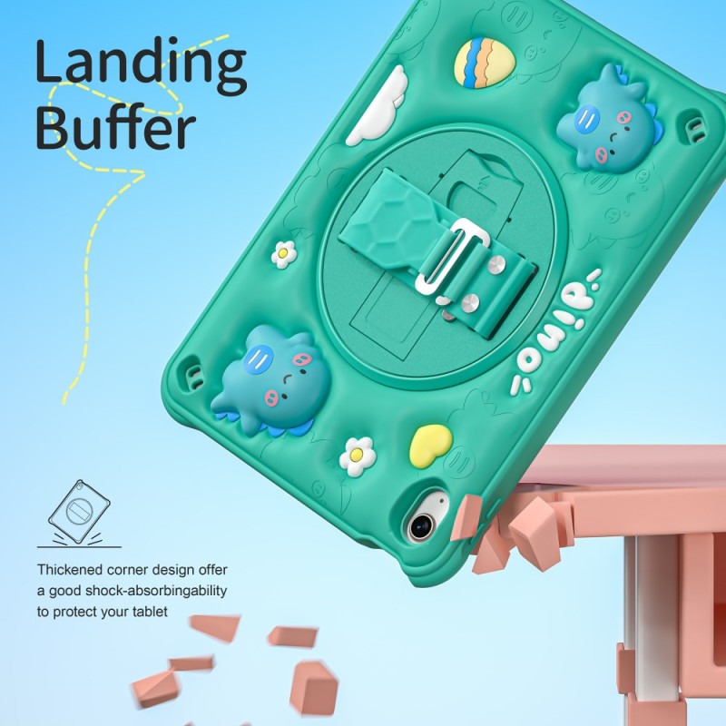 for iPad (A16) 11th/10th Generation Dinosaur Case for Kids Boys with Built in Screen Protector & Stand, Rugged Shockproof 3D Cute Cartoon Design, Strap Hangs in Car, Green
