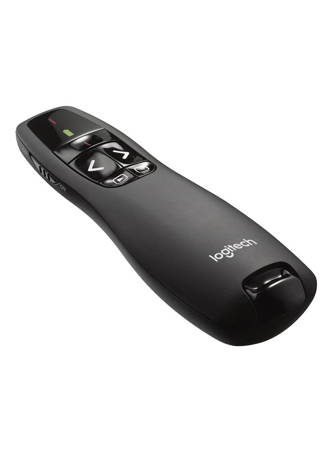 Logitech R400 Wireless Presentation Remote, 2.4 GHz, USB-Receiver, Red Laser Pointer, 15-Meter Operating Range, 6 Buttons, Intuitive Slideshow Control, Battery Indicator, PC Black