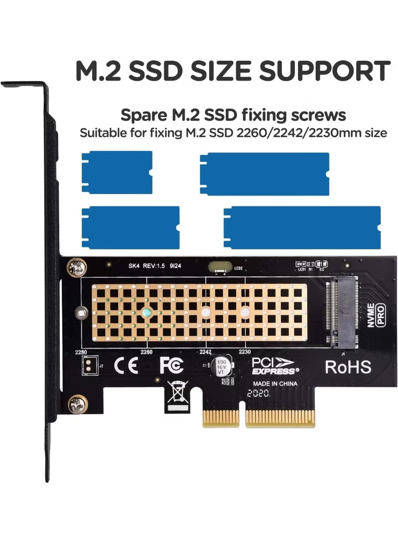 M.2 NVME SSD to PCIE 3.0×4 Expansion Card, Support PCIe x4 / x8 / x16 slot