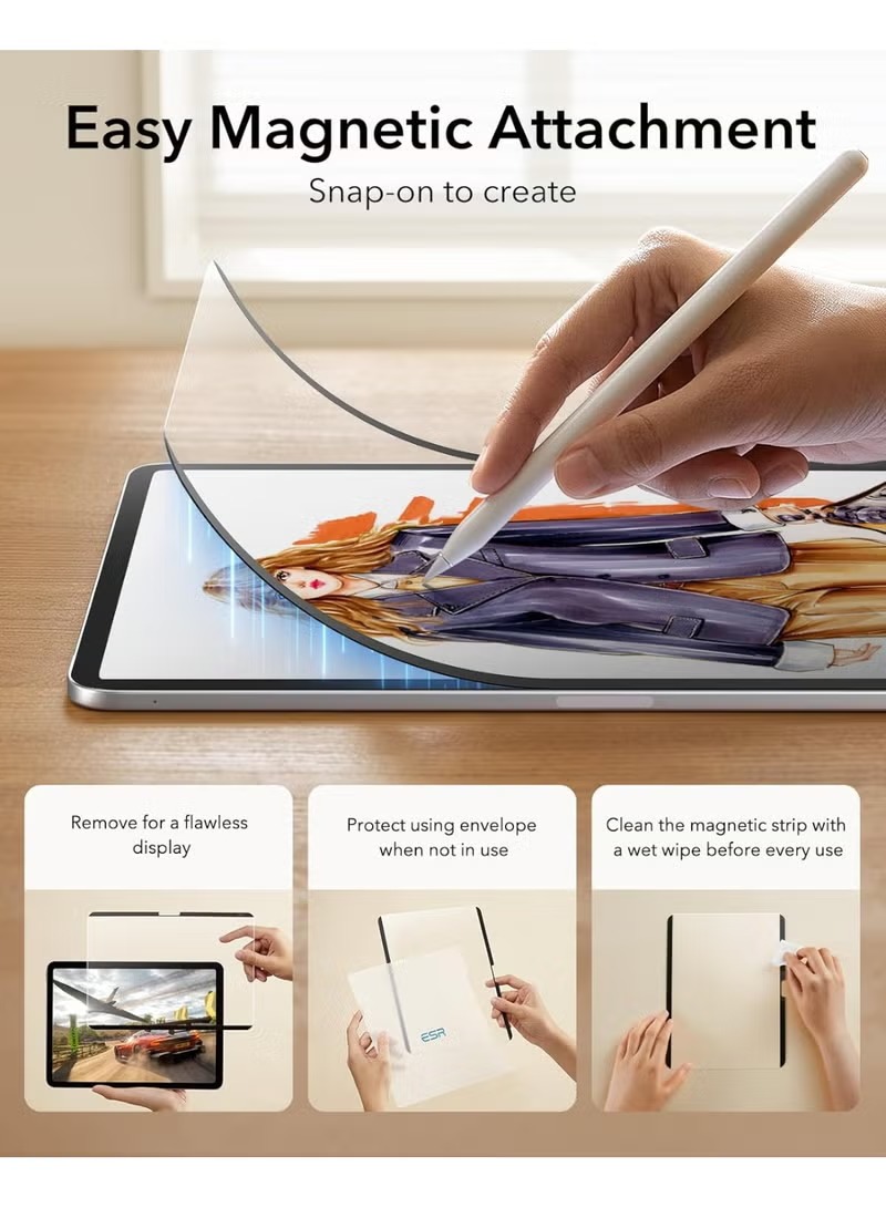 Magnetic paper-touch screen protector for iPad Pro 11-inch M5 2025/M4 2024, writes and draws as if you were writing on paper, detachable and reusable, compatible with tempered screen protectors, matte finish, washable