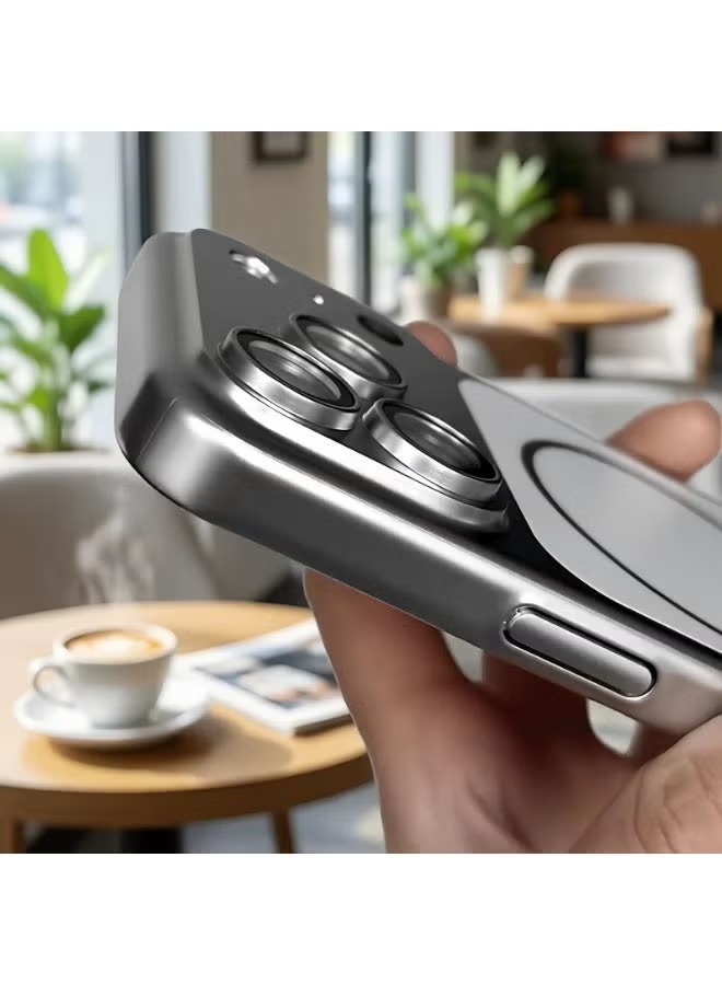 MagSafe Back Cover for iPhone 17 Pro, Crystal Shock Resistant with Protective Camera Cover, Silver