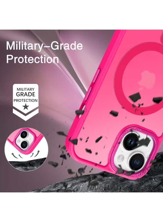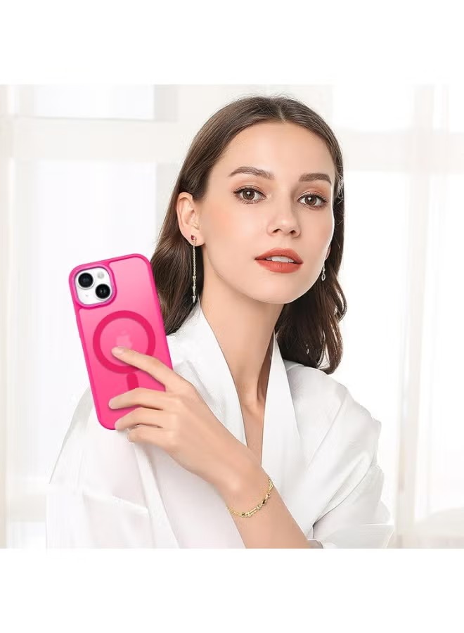 Mobile Phone Case iPhone 15 6.1 inch [Compatible with MagSafe] Translucent Matte Magnetic Shockproof Anti-Fingerprint Protective Case Case, Bright pink