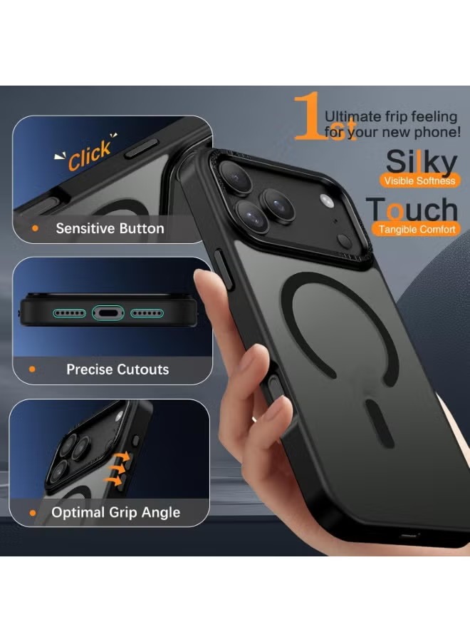 Mobile Phone Case iPhone 17 Pro [Compatible with MagSafe] Translucent Matte Magnetic Shockproof Anti-Fingerprint Protective Case 6.9 Inch Case, Black