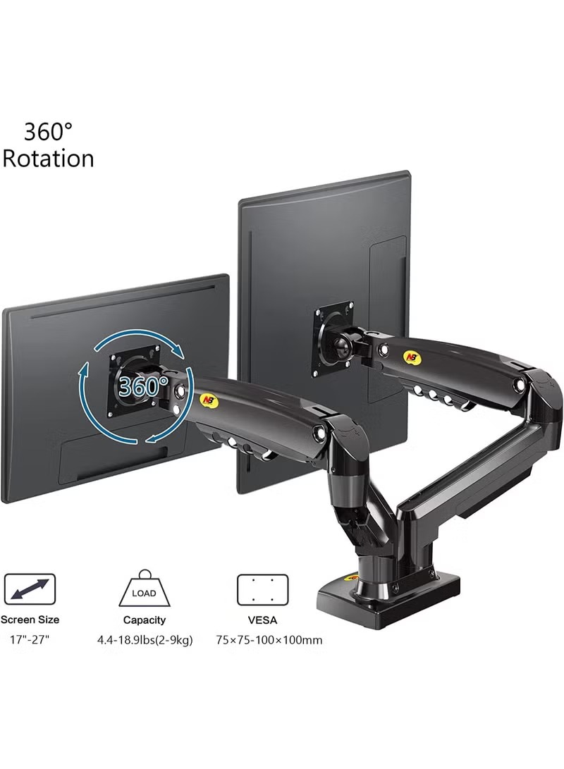 NB NORTH BAYOU Nb F160 17-27″ Dual Arm 2-9kg Monitor Stand with Shock Absorber New Version