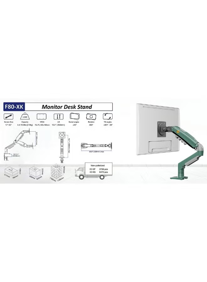 NB F80 Series Monitor Mount – Adjustable Desk Stand, Fits 17″-30″ Screens (Up to 19.8 lbs), Tilt, Swivel & Rotation – Green