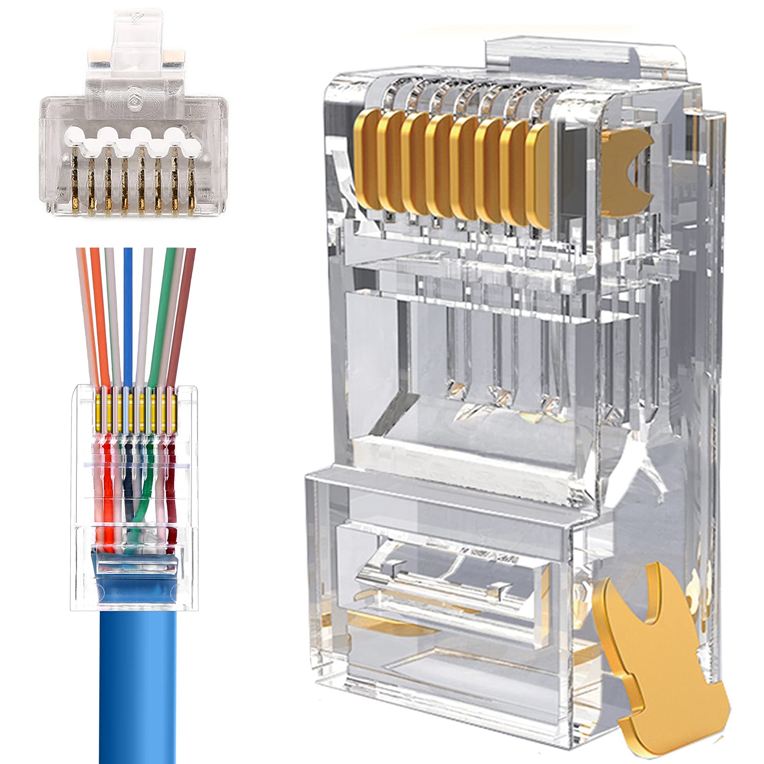 Onten OTN-E661 100 pcs 30UM Cat6A/5e/5 RJ45 connectors, gold-plated Gigabit Ethernet cable connectors, standard network plug for computer networking, crystal head