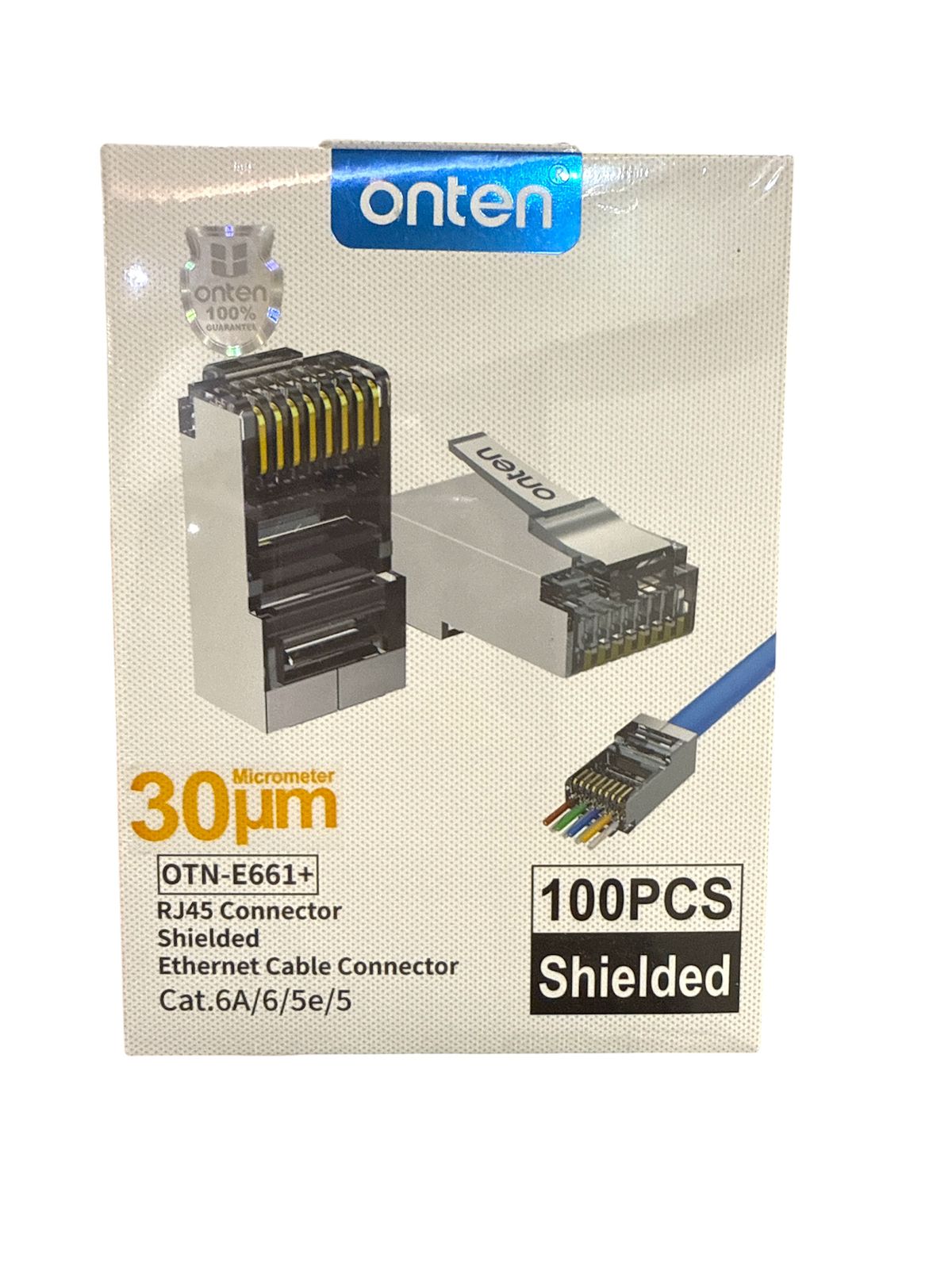 OTN – E661 Plus 100 pcs RJ45 30UM Connector Shielded Ethernet Cable Connector Cat.6A/6/5e