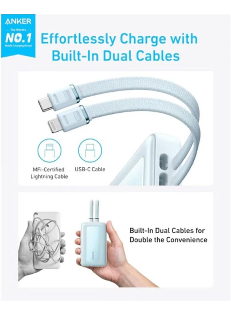 Power Bank, 20,000mAh 30W Max Fast Portable Charger with Built-in USB-C and MFi Certified Lightning Cables, USB-C&A, Battery Pack for iPhone 17/16/15/14 Series, MacBook, Galaxy