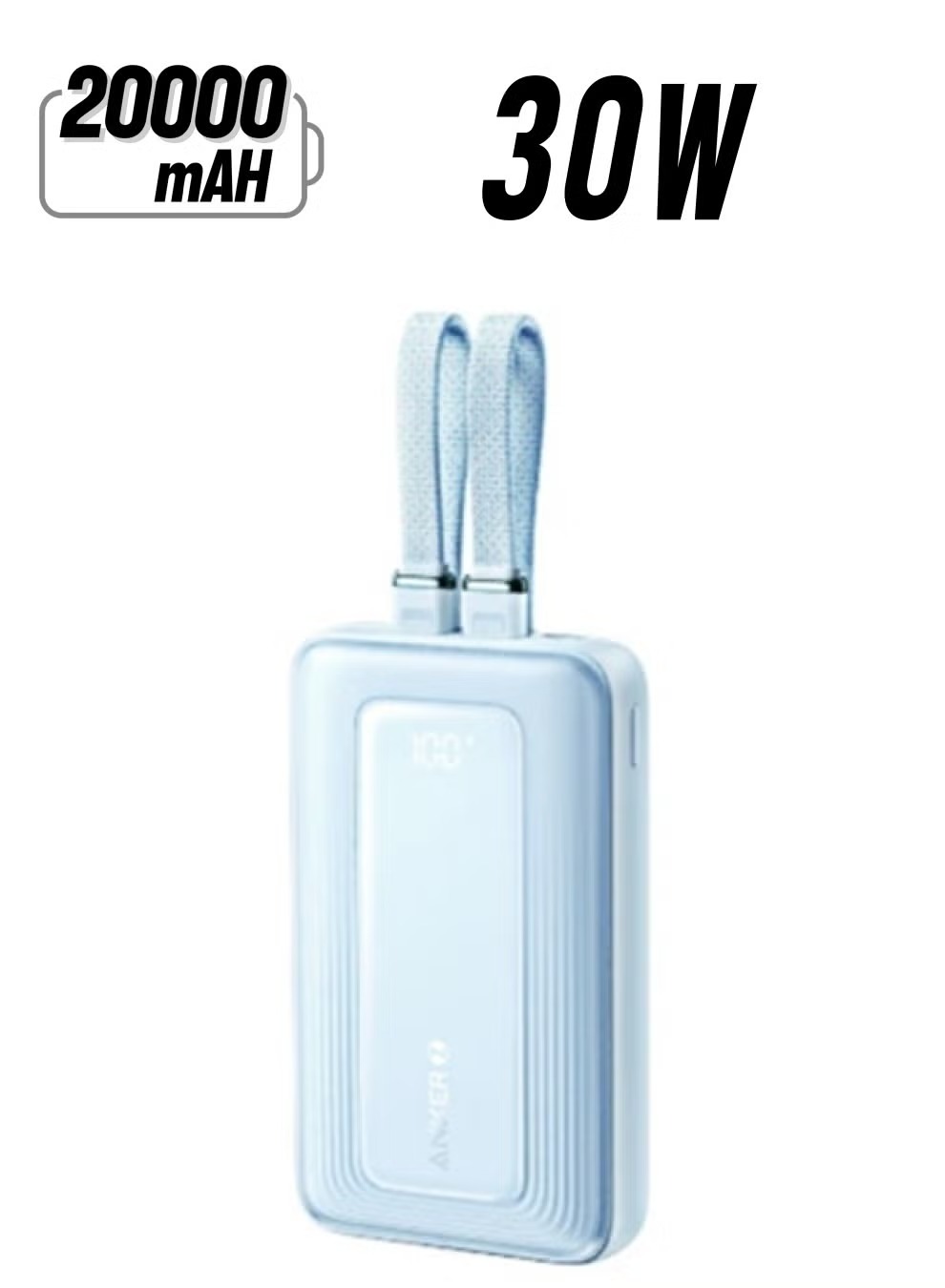 Product Weight 350 g Product Length 4.72 in Product Width 1.24 in What’s In The Box Anker Zolo Power Bank Welcome guide Model Name Anker Zolo 30W Power Bank with Built-in USB C Colour Name Blue Product Height 2.9 in Wattage 30 W Model Number A1681H31 Number of pieces 1