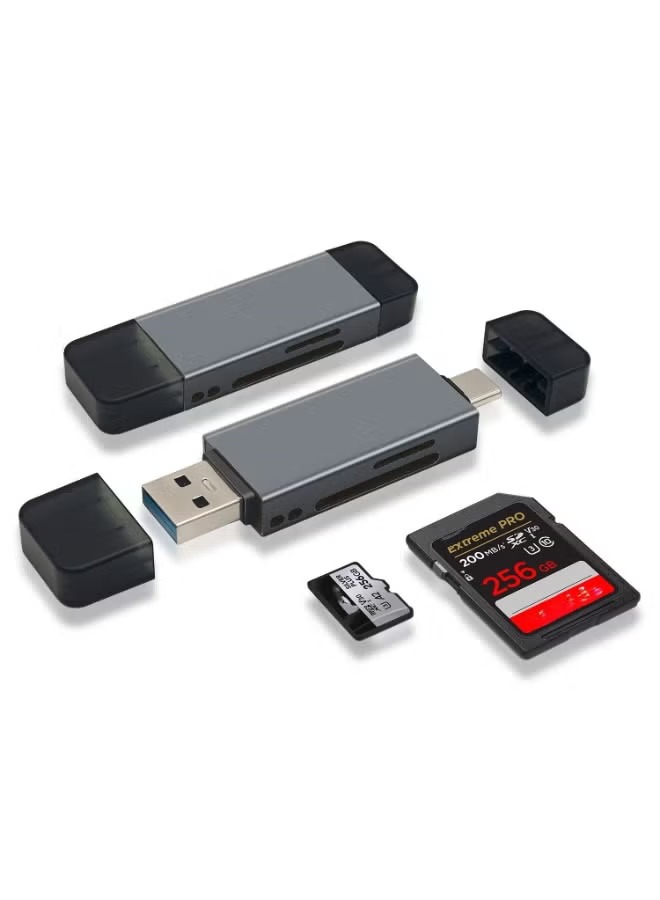 SD/Micro SD Card Reader, USB 3.2 and USB-C to SD/TF Memory Card Adapter, Support UHS-I SDHC/SDXC/MicroSD, Suitable for Mac, Macbook, Computer, Laptop, iPad 10, iPhone,Support 2TB memory card/5Gbps high-speed transmission/plug and play – Grey