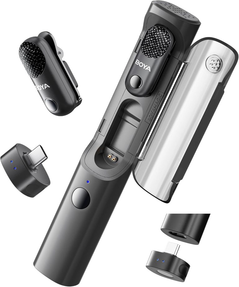 BOYA Magic-05 Wireless Lavalier Microphone, 30Hrs Battery,328FT LOS Range, Safety Track &Limiter, Ai Noise Reduction USB-C Wireless Lapel Mini Mic for Android iPhone 16/15 Audio Video Live Broadcast