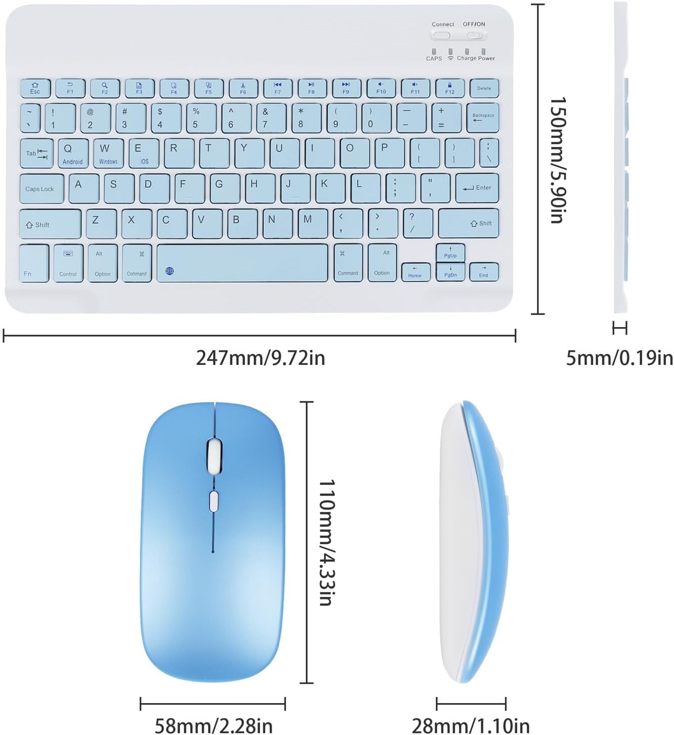 CT-1010 Wireless Keyboard and Mouse Combo – Slim, Rechargeable, Bluetooth & 2.4GHz – Ultra-Thin Keyboard with Mouse for Laptop, Tablet, PC, MacBook (blue)