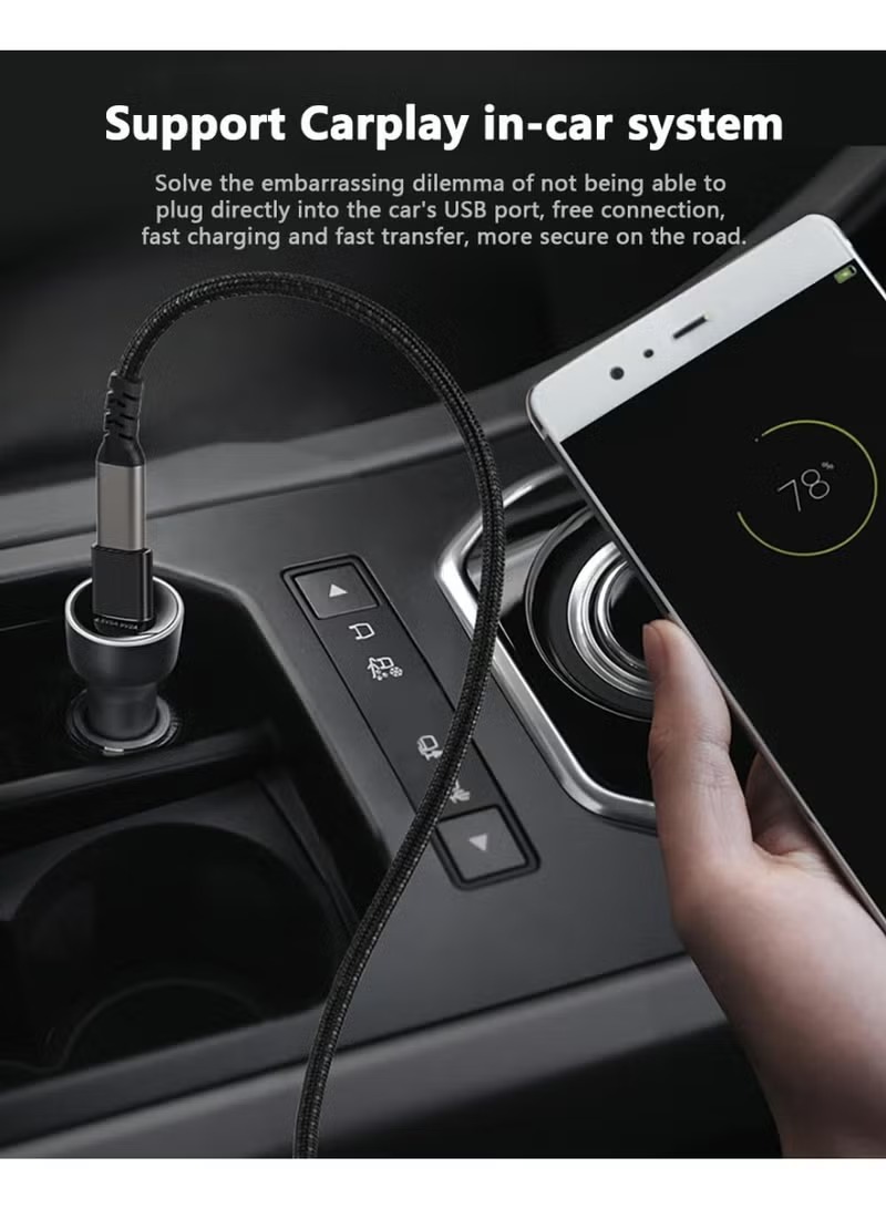 【Support Carplay Car System】solve the embarrassing dilemma of not being able to plug directly into the USB port in the car, free connection, fast charging and fast transfer, more secure on the road. Support PD fast charging, built-in double resistance, safer and not hurt the device.