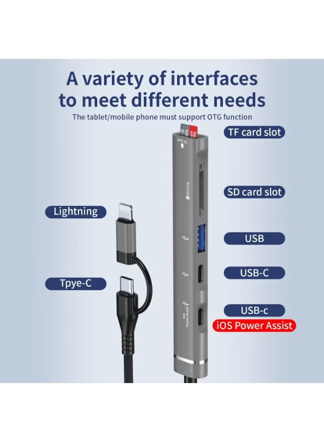 USB C/Lightning Hub Docking Station Expanding Multiple Ports: