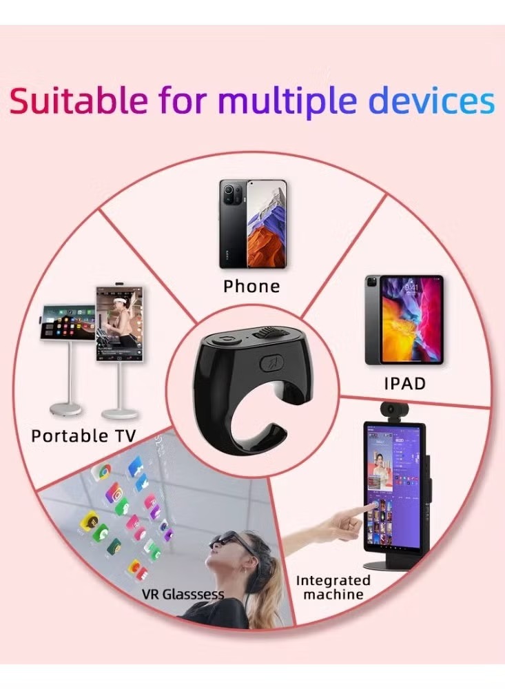 The XQ7 Multi-functional Ring is a versatile Bluetooth remote control designed to enhance your digital experience. This compact device serves as a convenient mobile phone selfie trigger, an audio and video controller, and an e-book page turner. Its innovative ring design offers comfortable wear and easy accessibility, making it suitable for controlling various devices including smartphones, iPads, portable TVs, VR glasses, and integrated machines. Simplify your interaction with multimedia and digital content with this all-in-one smart accessory.